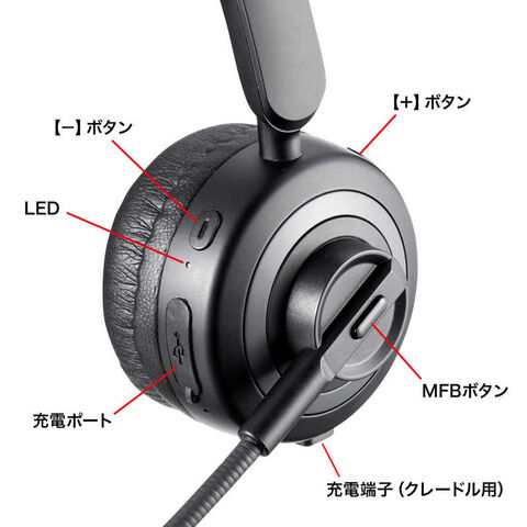 サンワサプライ ヘッドセット [ワイヤレス(Bluetooth) / 片耳 / ヘッドバンドタイプ] MM-BTMH66BK