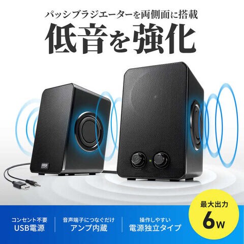 サンワサプライ USB電源スピーカー(パッシブラジエーター搭載) MMSPL22UBK