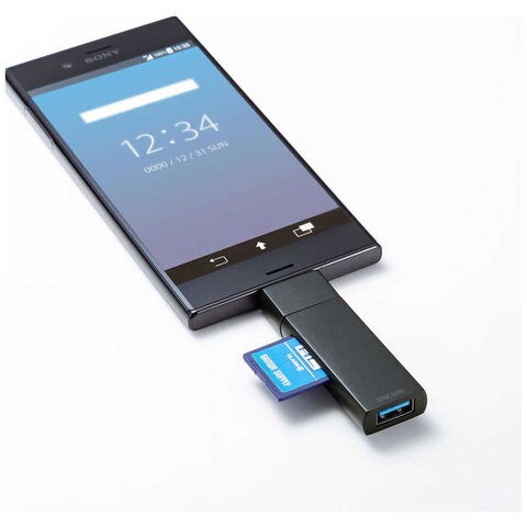 サンワサプライ Type-Cコンパクトカードリーダー(USB 1ポート付き) [ADR3TCMS7BKN] ADR-3TCMS7BKN