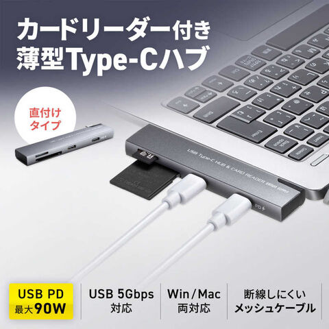 サンワサプライ USB 5Gbps 2ポート スリム ハブ(カードリーダー付き) USB-5TCPC31GM