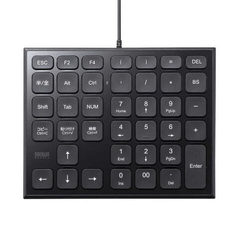 ●一般的なテンキーに搭載しているキーに加え、「ESC」「F2」「F4」「半角/全角」「Alt」「Ctrl」「Shift」「Tab」「コピー」「貼り付け」「検索」「(」「)」「=」「,」を追加。