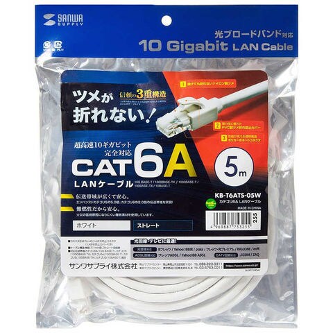サンワサプライ カテゴリ6A LANケーブル [KBT6ATS05W] KB-T6ATS-05W
