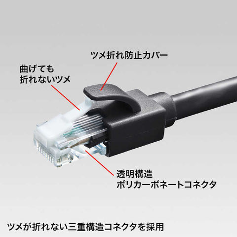 コネクタ形状:コネクタ形状:RJ-45ツメ折れ防止コネクタ(ツメ折れ防止カバー付き)形状タイプ:スタンダードタイプケーブル構造:UTP(4対)ケーブル導体:単線(23AWG)