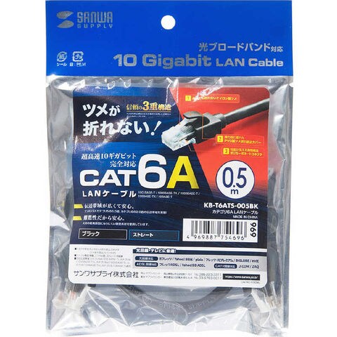 サンワサプライ カテゴリ6A LANケーブル [KBT6ATS005BK] KB-T6ATS-005BK