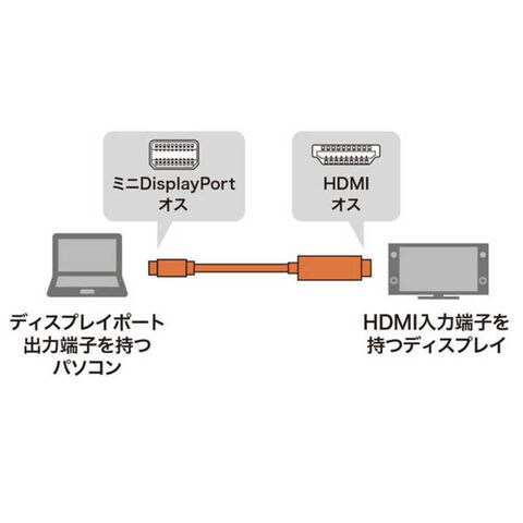 ミニDisplayPortを搭載したPC本体をHDMIインターフェースを持つディスプレイ・テレビに接続するときに使用する変換ケーブルです。