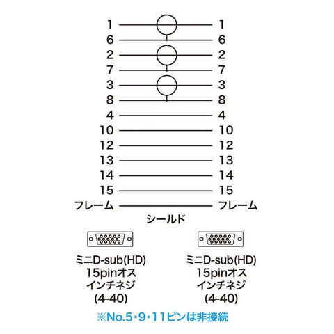 仕様1:ミニD-sub15pinオス インチネジ(4-40)-ミニD-sub15pinオス インチネジ(4-40)