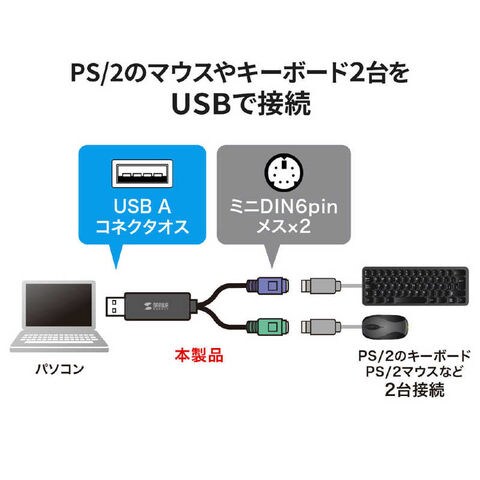 ●使い慣れたPS/2マウス、PS/2キーボードをUSB接続で使用することができ、PS/2ポートを搭載しないパソコンで使用することができます。