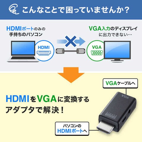 サンワサプライ HDMI VGA変換アダプタ(オーディオ出力付き) [ADHD25VGA] AD-HD25VGA