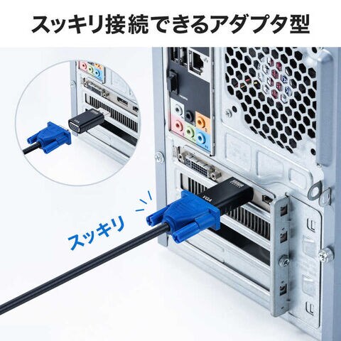 仕様2:[対応機種]<パソコン>DisplayPortを搭載する各社パソコン<ディスプレイ>ミニD-sub(HD)15pin入力端子を標準搭載しているテレビ・パソコン用ディスプレイなど※ディスプレイモニタ側のDisplayPortをVGAコネクタ(ミニD-sub(HD)15pin)に変換することはできません。※本製品は音声データには対応していません。