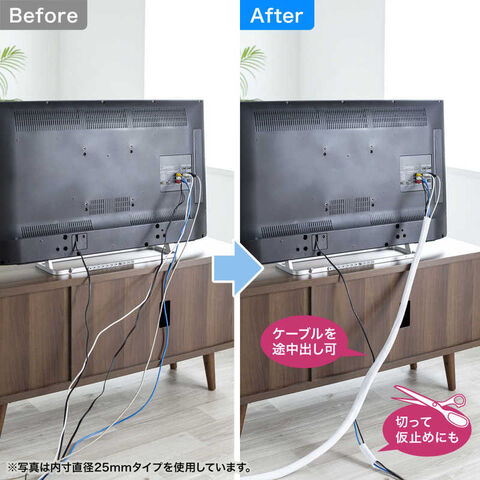 ●巻き付け構造のため、ケーブルを必要な位置に出すこともできます。