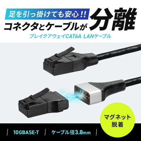 うっかり事故から機器を守る、マグネットブレイクアウェイCAT6A LANケーブル