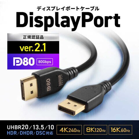 DisplayPort規格ver.2.1 DP80ケーブル (正規認証取得品ケーブル)