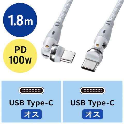 サンワサプライ USB2.0 Type-C両側コネクタ540度回転ケーブル(100W・1.8m) KU-CCP100KAW18W