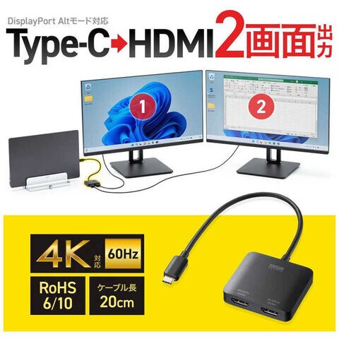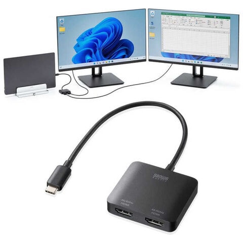 サンワサプライ USB Type C-HDMI変換アダプタ(2ポート/4K対応) AD-ALCMST2HD2