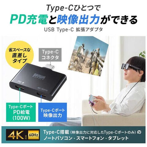 サンワサプライ USB Type-C 拡張アダプタ(アダプタタイプ・PD対応) AD-ALCCPD01
