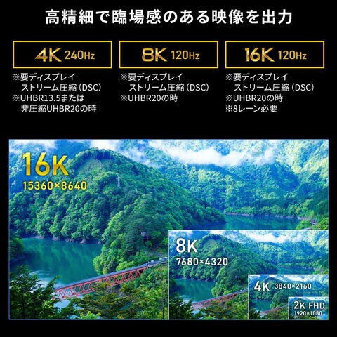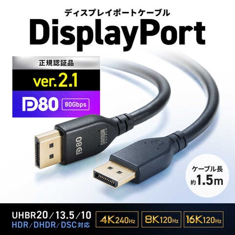 DisplayPort規格ver.2.1 DP80ケーブル (正規認証取得品ケーブル)