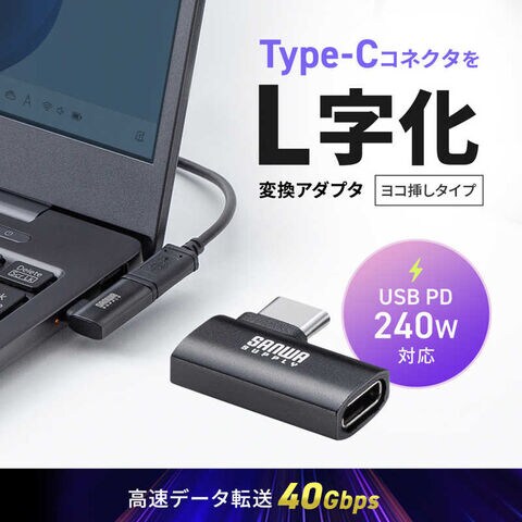 サンワサプライ Type-C変換アダプタ(CtoC・L字横挿し・40Gbps・240W) AD-USB35CCFLY