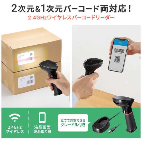 サンワサプライ ワイヤレス2次元バーコードリーダー(2.4GHzワイヤレス) BCRWL2D1BK
