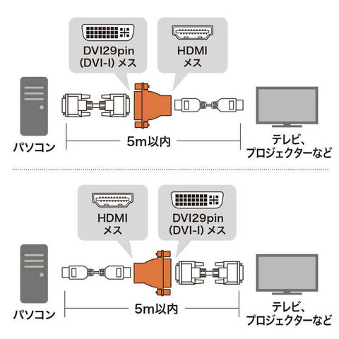 ●HDMIケーブルとDVIケーブルとを中継する時に使用します。