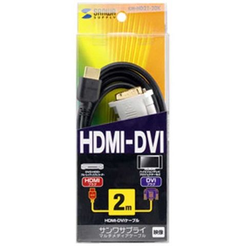 サンワサプライ 映像変換ケーブル ブラック/ホワイト[HDMI⇔DVI /2m] [KMHD2120K] KM-HD21-20K