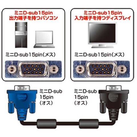サンワサプライ ディスプレイケーブル(アナログ・15m) [KCVMH150] KC-VMH150