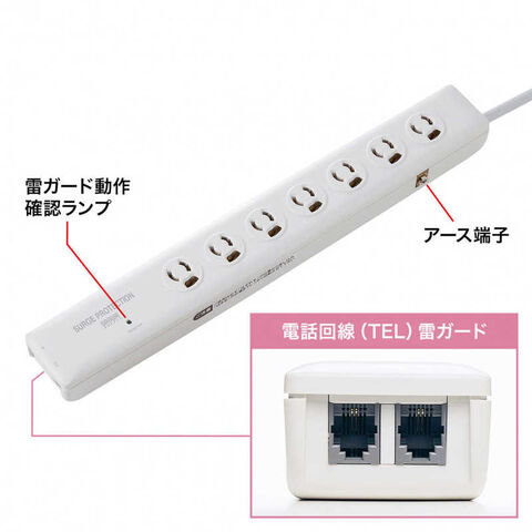 ●電源(AC)雷ガード/内蔵されたサージ吸収素子(バリスタ)が雷サージを吸収し、接続された機器を守ります。