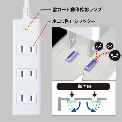 ●雷ガードを内蔵しており、接続機器を雷から守ります。雷ガード作動中は確認ランプが点灯します。