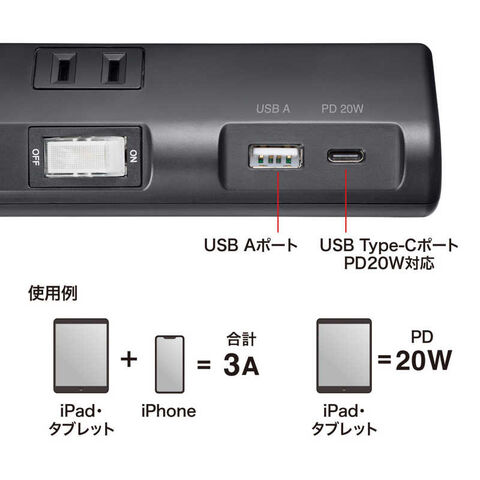 サンワサプライ 節電タップ TAP-B107UC-3BK
