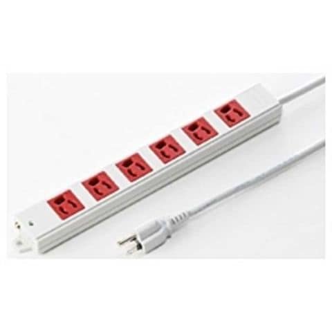 ● 病院、工場、オフィスの緊急用電源として使われる赤色の電源タップです。