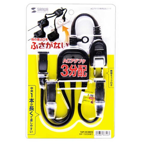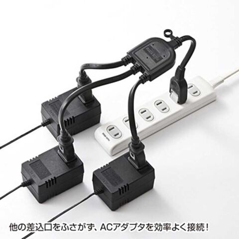 ●ACアダプタ使用時に無駄なく設置できる3分岐タイプの電源延長コードです。