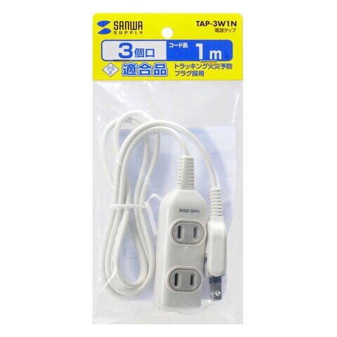 サンワサプライ 電源タップ (2ピン式・3個口・1m) [TAP3W1N] TAP-3W1N