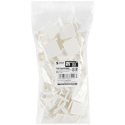 サンワサプライ コンセント安全キャップ 抜け止め用(3ピン用・100個入・ホワイト) [TAPCAP3P100L] TAP-CAP3P100L