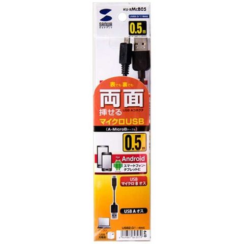 コネクタの向きを気にせず挿せるマイクロUSBケーブル(A to microB)(0.5m・ブラック)