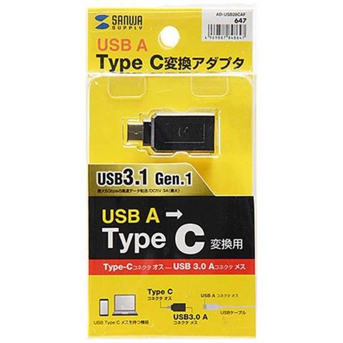 サンワサプライ [USB-C → USB-A]3.1 Gen1変換アダプタ ブラック [ADUSB28CAF] AD-USB28CAF