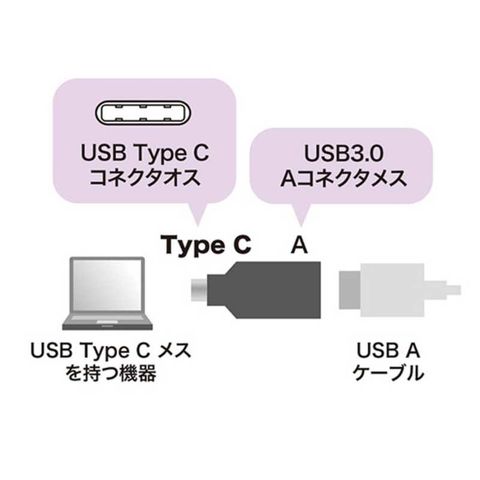 ・コネクト形状:USB Type-Aメス、USB Type-Cオス