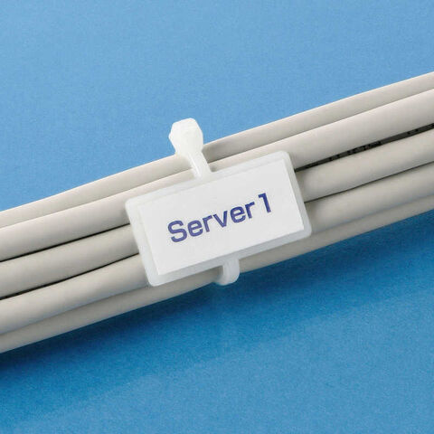識別シール付きでケーブルの分類ができる、タグが飛び出さないマーカータイ。