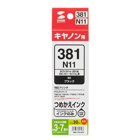 サンワサプライ 詰め替えインク [INKC381B30] BCI-381/XKI-N11BK用 INK-C381B30