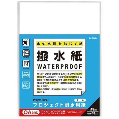 オキナ プロジェクト耐水用紙 A3 撥水紙 無地 PW3266