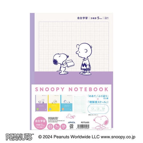アピカ スヌーピー特殊罫パックノート 自主学習 5mm方眼罫 10mm実線入り 3冊束 PST5J03