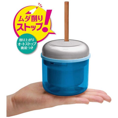 リビング学習にピッタリの乾電池式電動鉛筆削り 本格らせん刃とオートストップ機能で抜群の使用感を実現