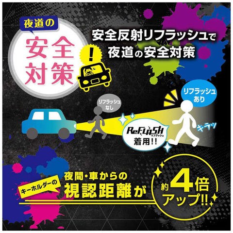 リフラッシュ着用でキーホルダーの視認距離が約4倍アップ カラビナで丈夫