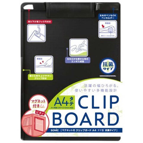 ソニック マグネット付クリップボードA4タテ抗菌 CBー4876ーD