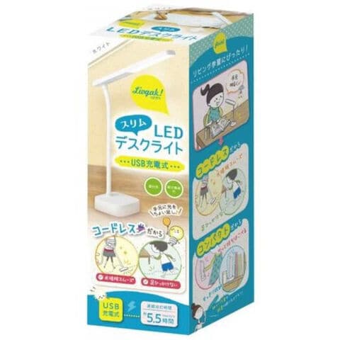 ソニック スリムLEDデスクライト USB充電式 リビガク ホワイト LV-5765-W