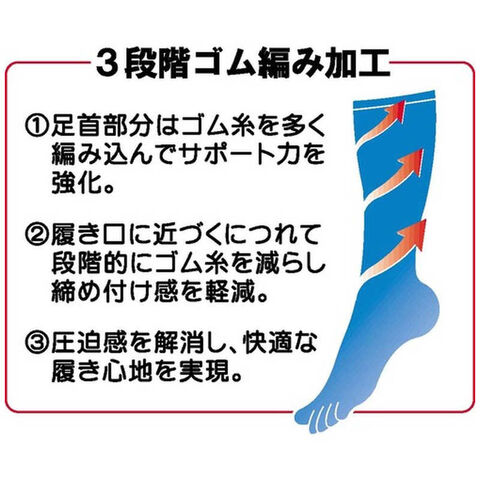 ●3段階ゴム編み加工で長時間の着用を快適にサポートします。