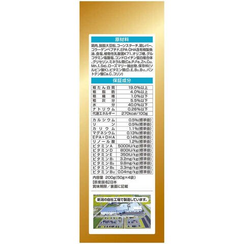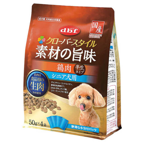 食品用鶏肉の生肉をふんだんに使用し、素材の旨味が詰まった半生タイプのシニア犬用総合栄養食です。