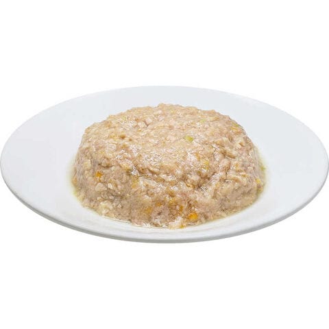 鶏胸肉、豚心臓、鶏レバーをベースに、すりおろした野菜(じゃがいも、人参、グリンピース)を加え、高齢犬にも食べやすいやわらかさに仕上げた総合栄養食です。高齢期の健康に配慮して、乳酸菌とオリゴ糖を配合しました。高齢犬の主食としてご使用いただけます。