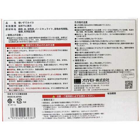 ●自然界の活性エネルギーを備えた天然ミネラル機能鉱石(パージ)を配合したオカモト社オリジナルのカイロです。