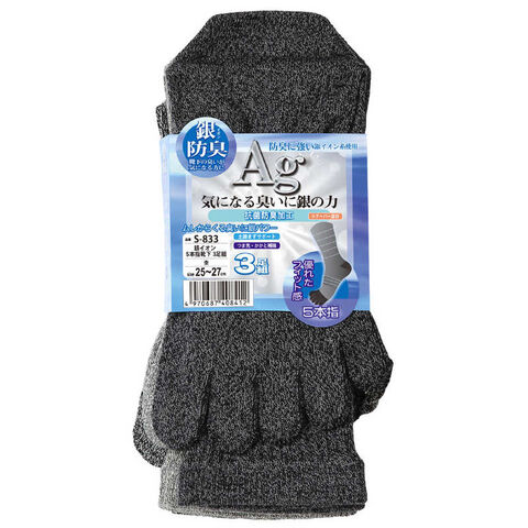 おたふく手袋 S-833 銀イオン 5本指靴下 3P アソート杢 S833