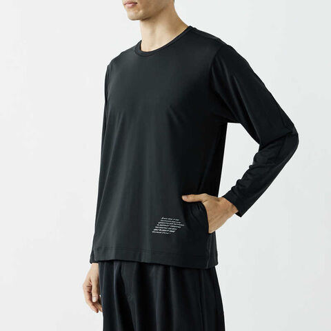 おたふく手袋 ゆったりストレッチ冷感 ロングスリーブ クルーネックシャツ ブラック LLサイズ JW-742