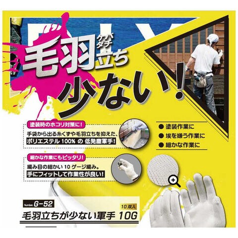 おたふく手袋 オタフク G52 毛羽立が少ない軍手10G 10双 G-52